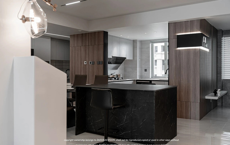 燈光的渲染、大理石紋的自然天成、木紋的有序淡雅,