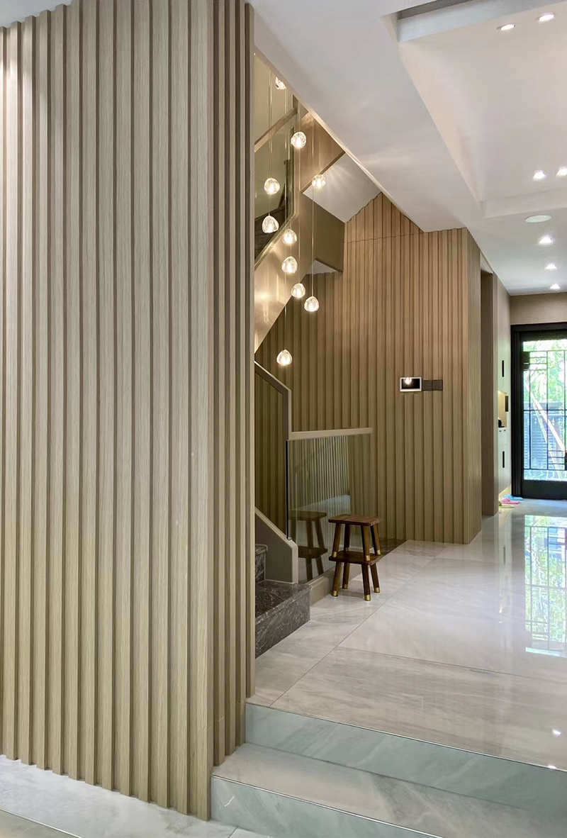 香檳金的護墻在燈光渲染下閃著淡淡的金屬光澤,更顯質(zhì)感。