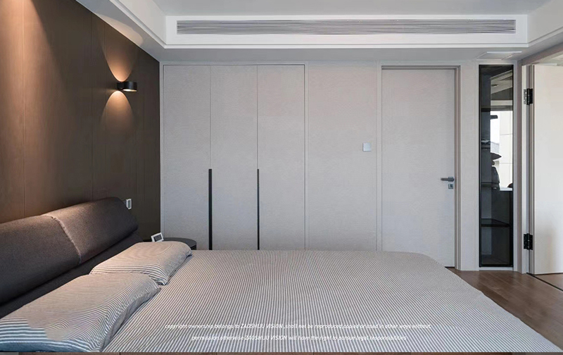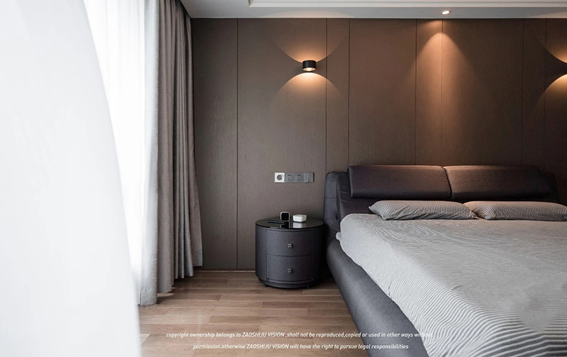 臥室舒適溫馨,遵循給主人優(yōu)質(zhì)睡眠質(zhì)量的設(shè)計主旨,采用了溫柔冷靜的暖色。