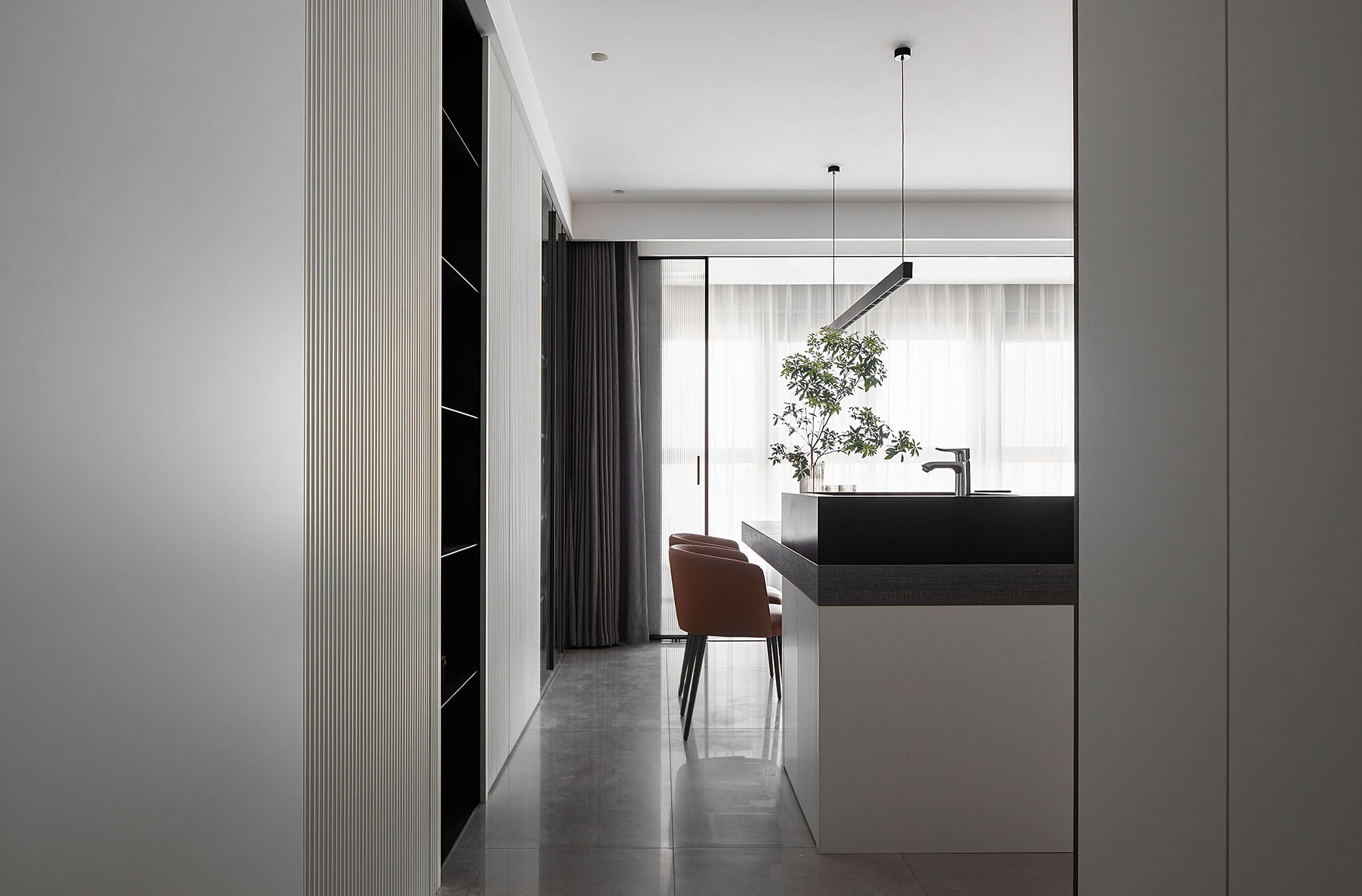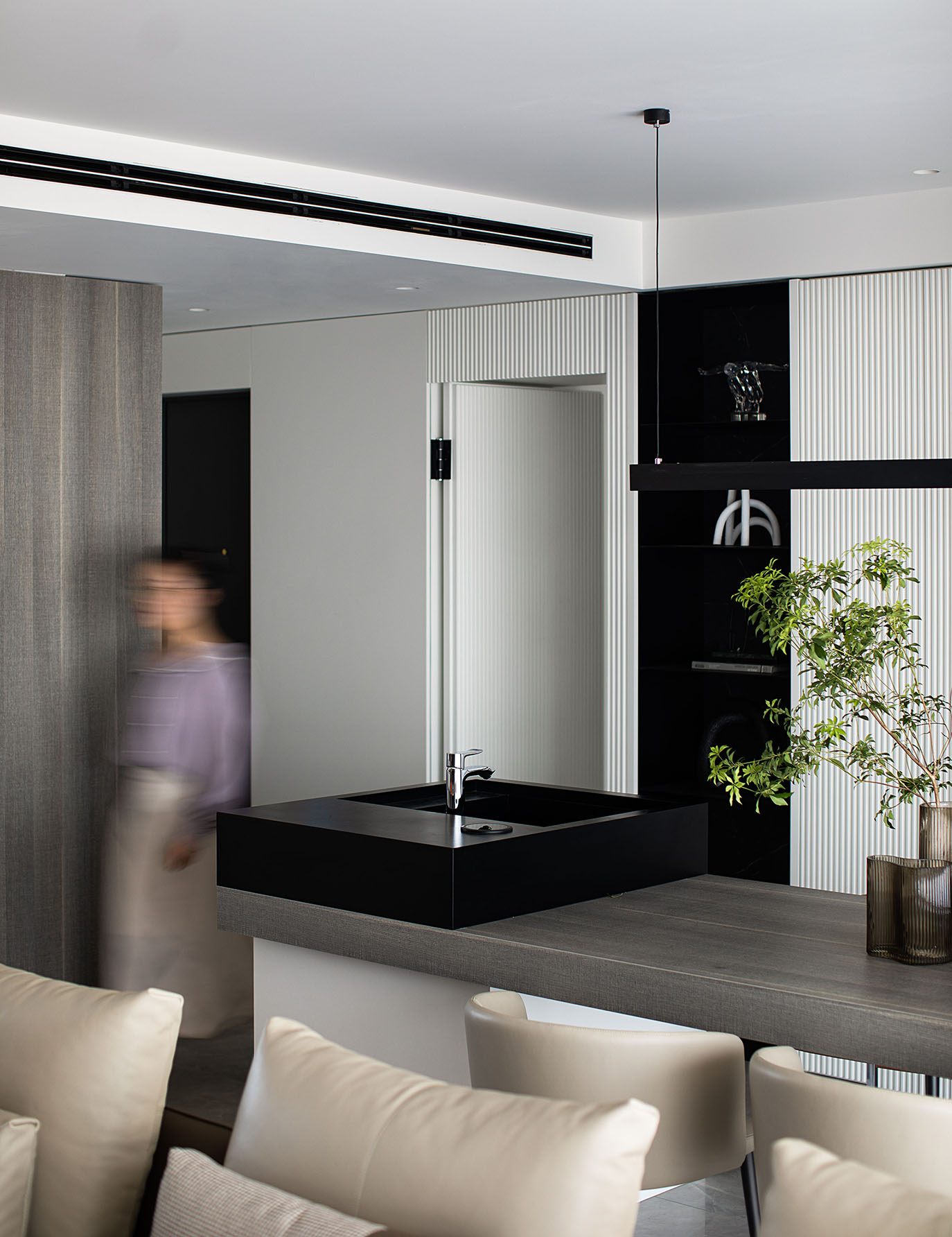 還是隱形門拼接處的毫厘分寸都彰顯出居住者對精致生活的追求,