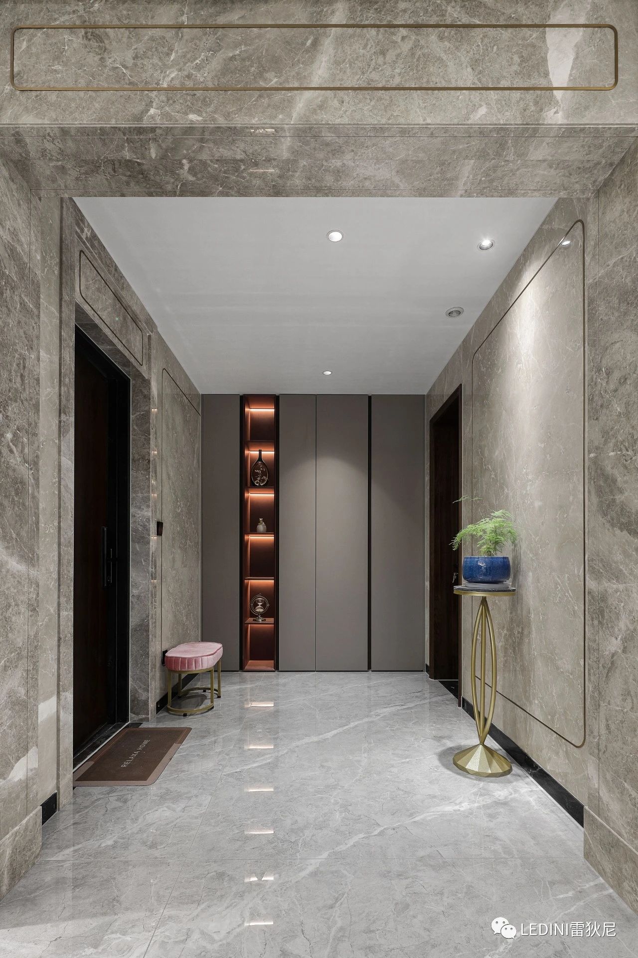 玄關(guān)處用天然大理石鋪設(shè),入戶即感受到整個(gè)空間的華美,
