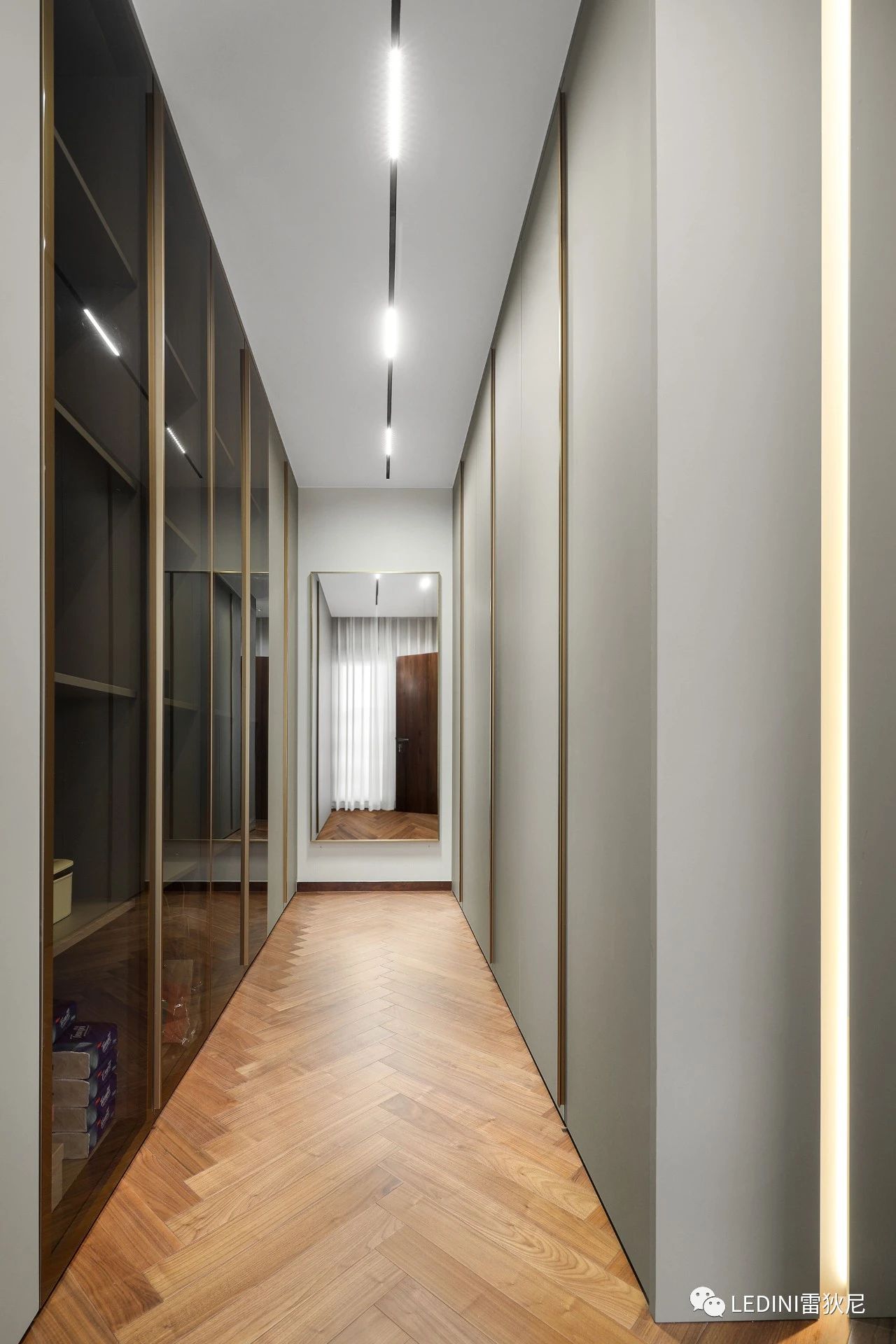 金屬邊框玻璃柜極簡(jiǎn)的線條讓衣帽間秩序與美感并存,
