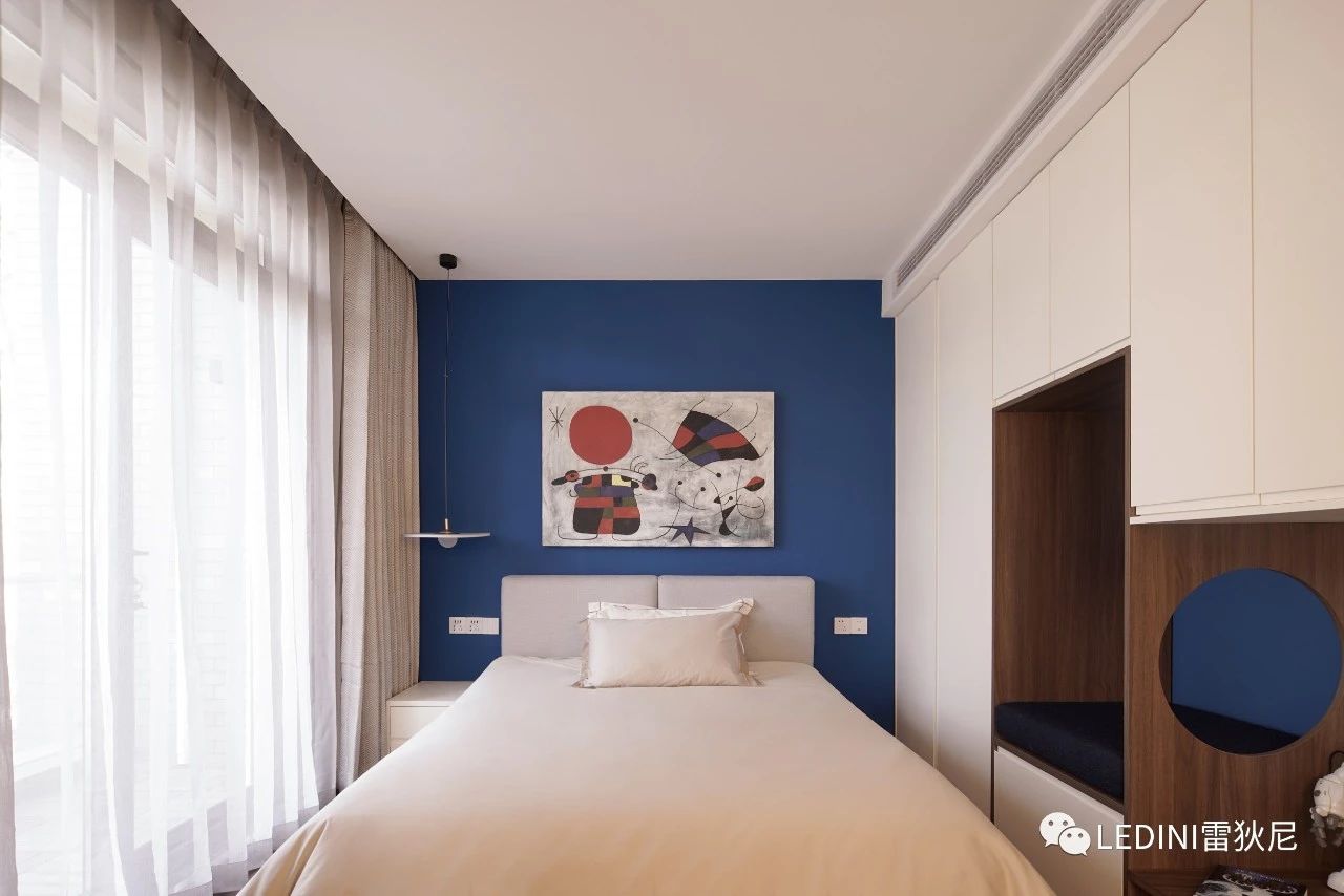 簡約又富有細節(jié),設(shè)計師采用白色和藍色的色彩對比法,