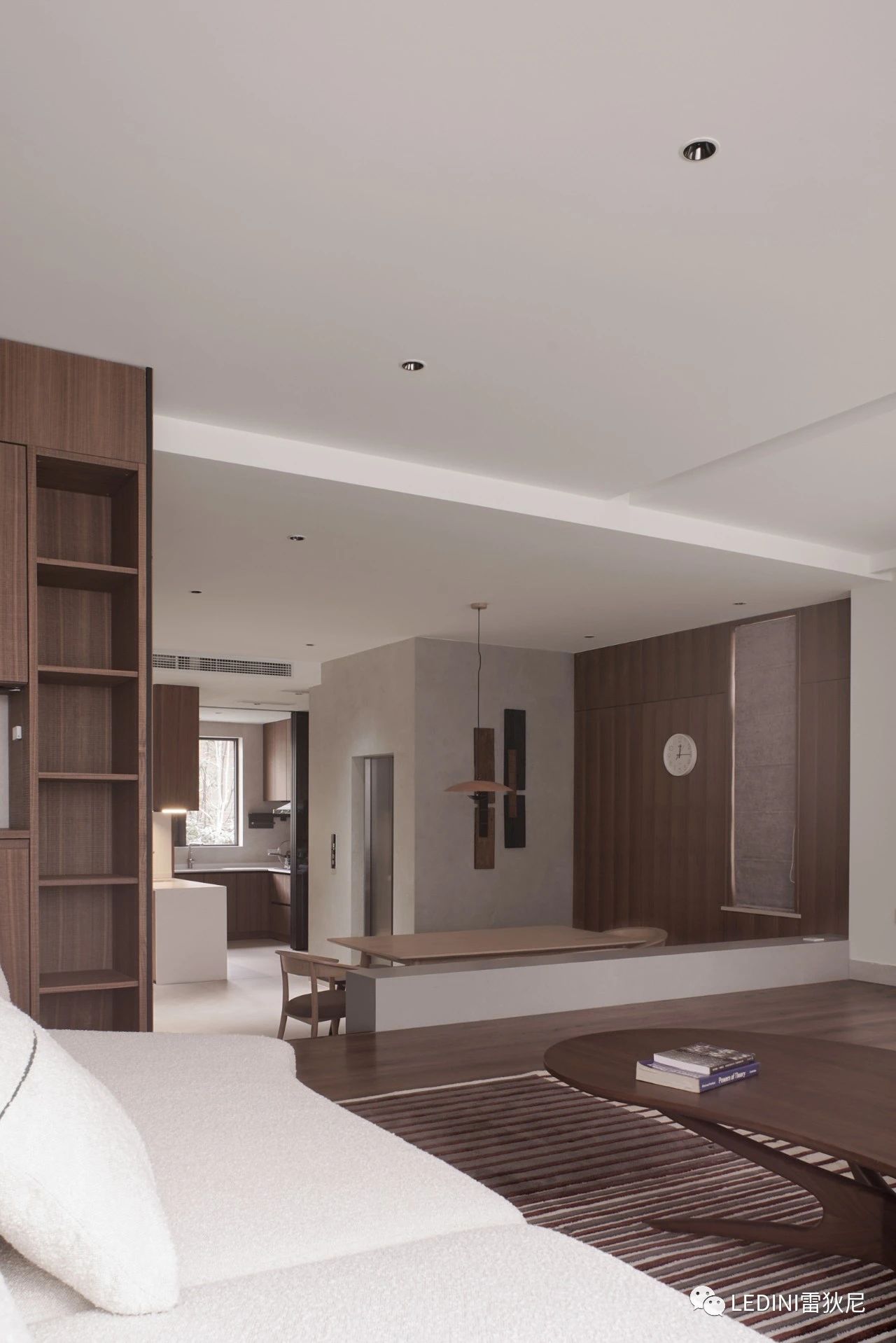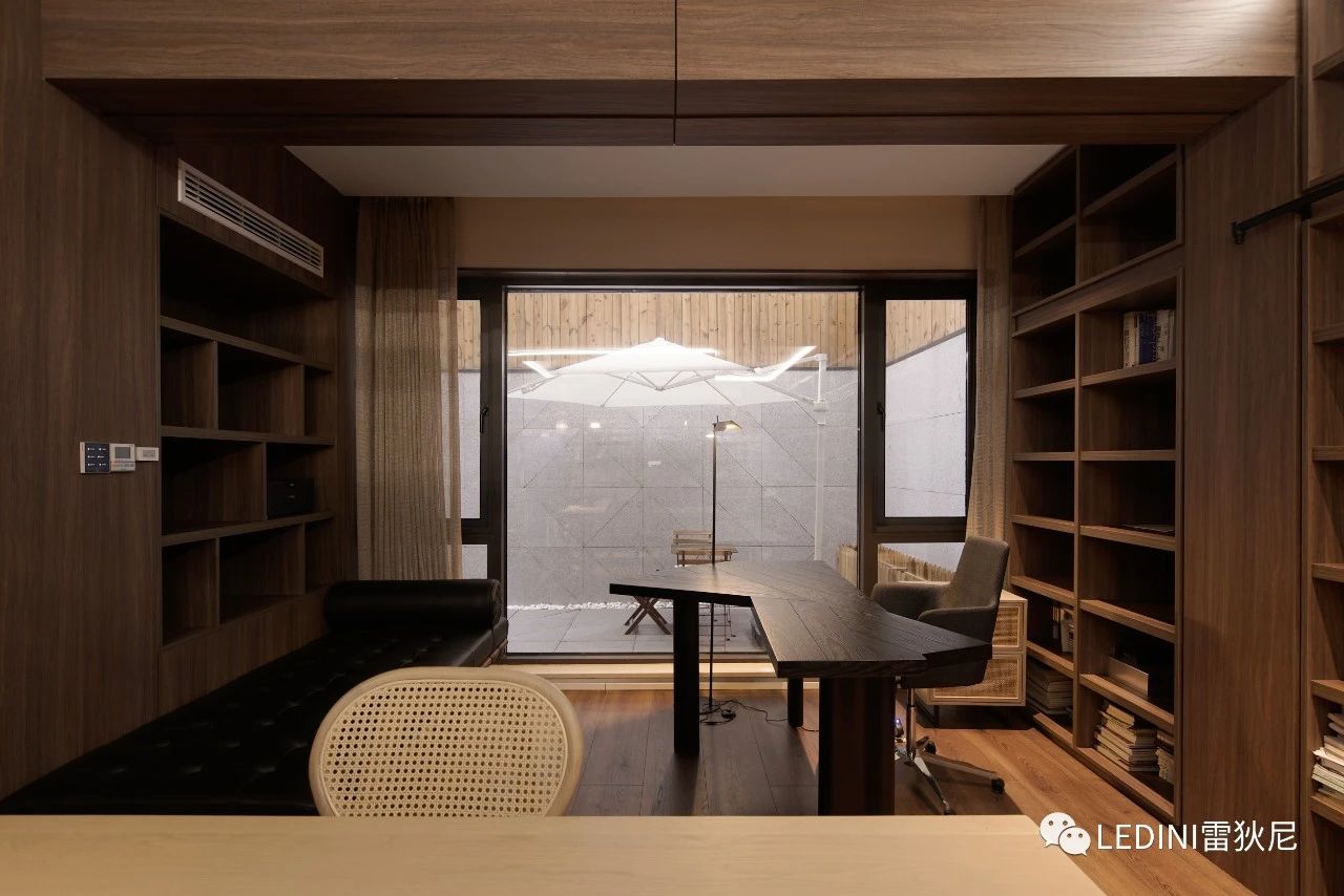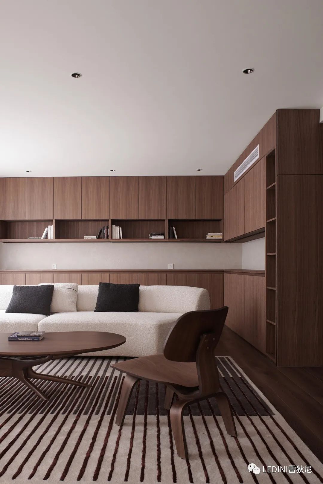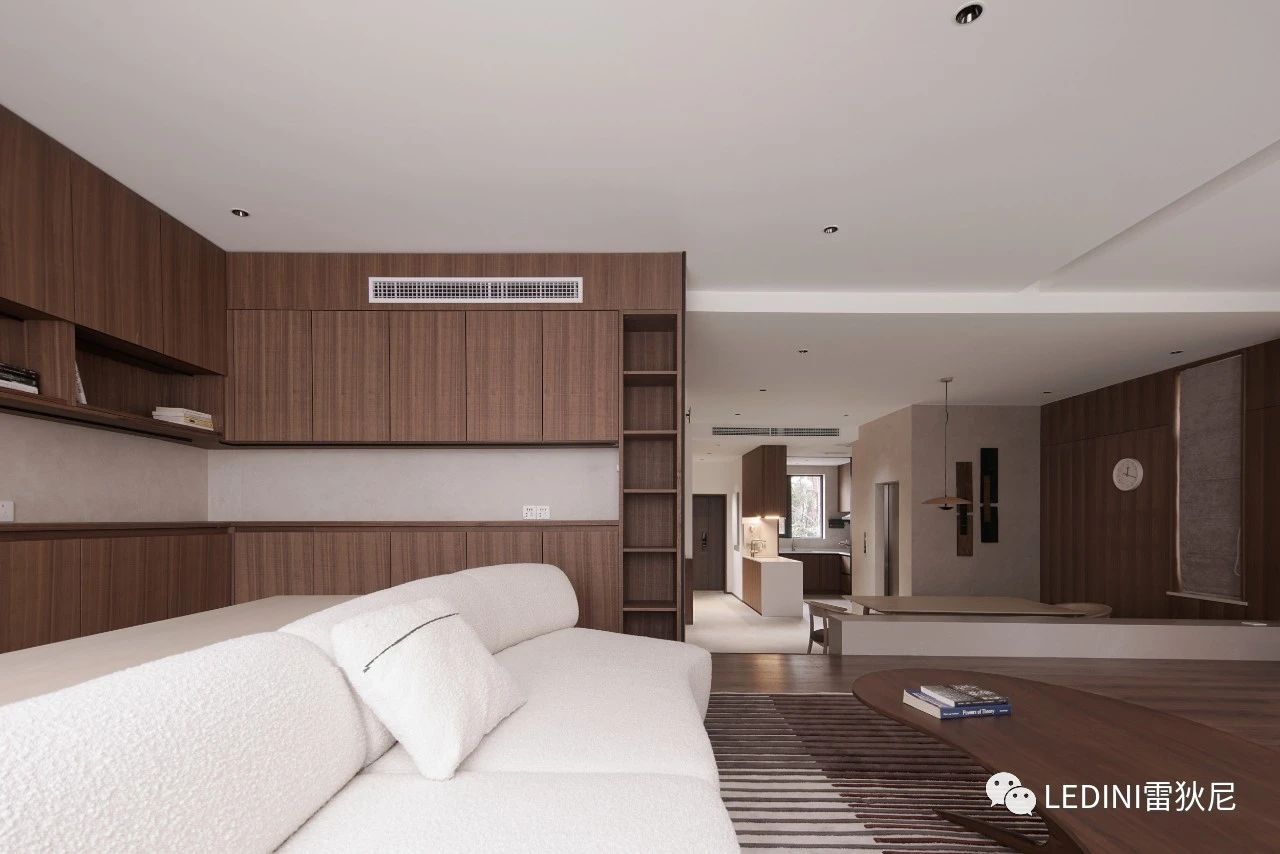 于是選用了LEDINI胡桃木鋸齒紋為全屋主要材料,相較于傳統(tǒng)板材,