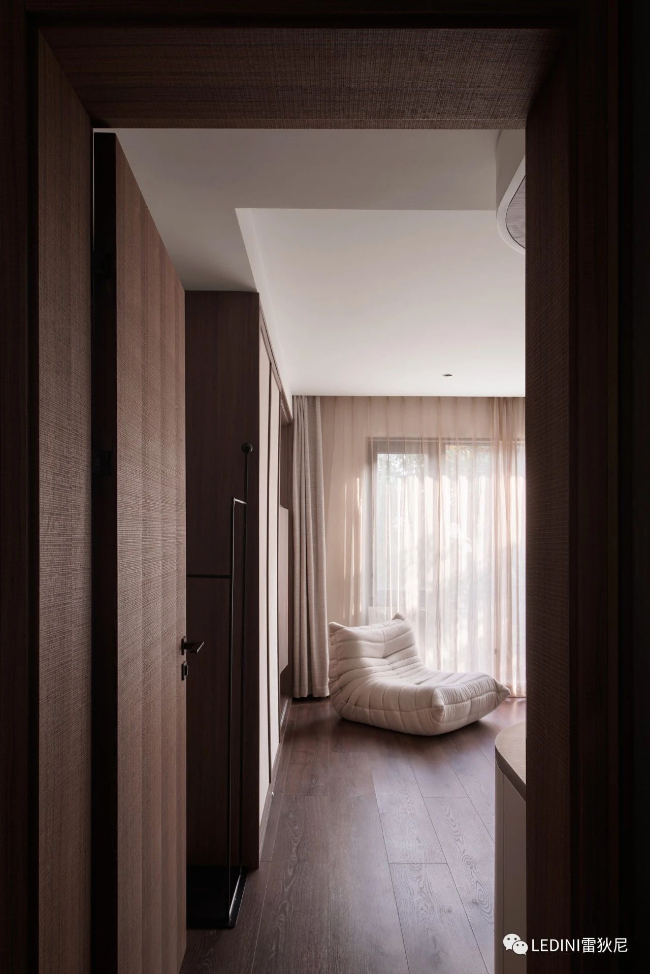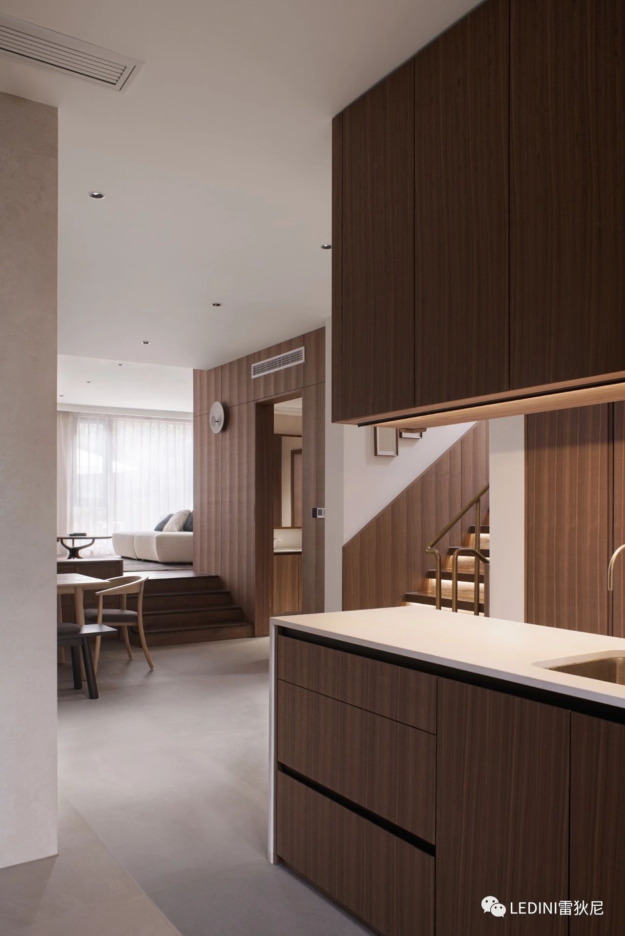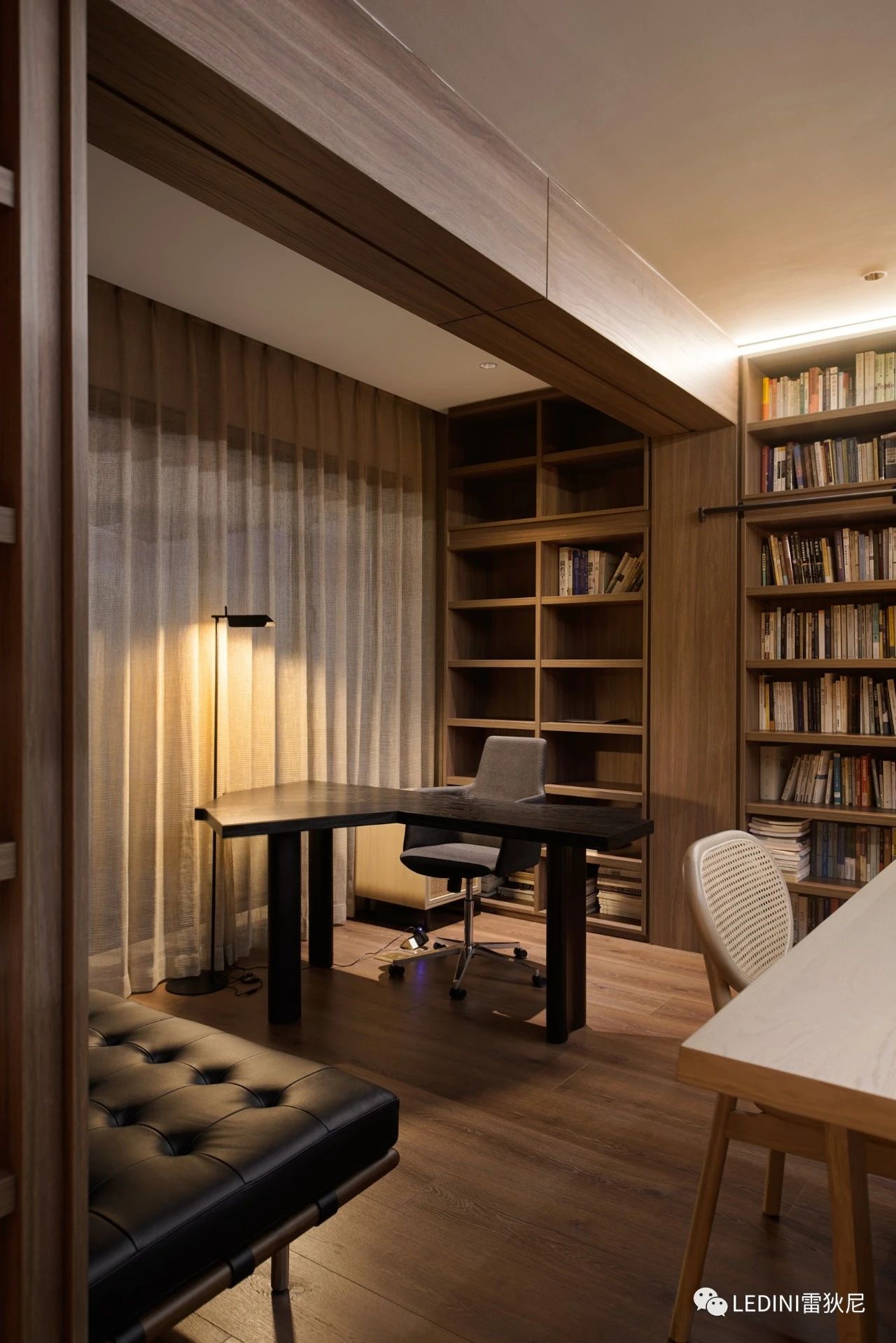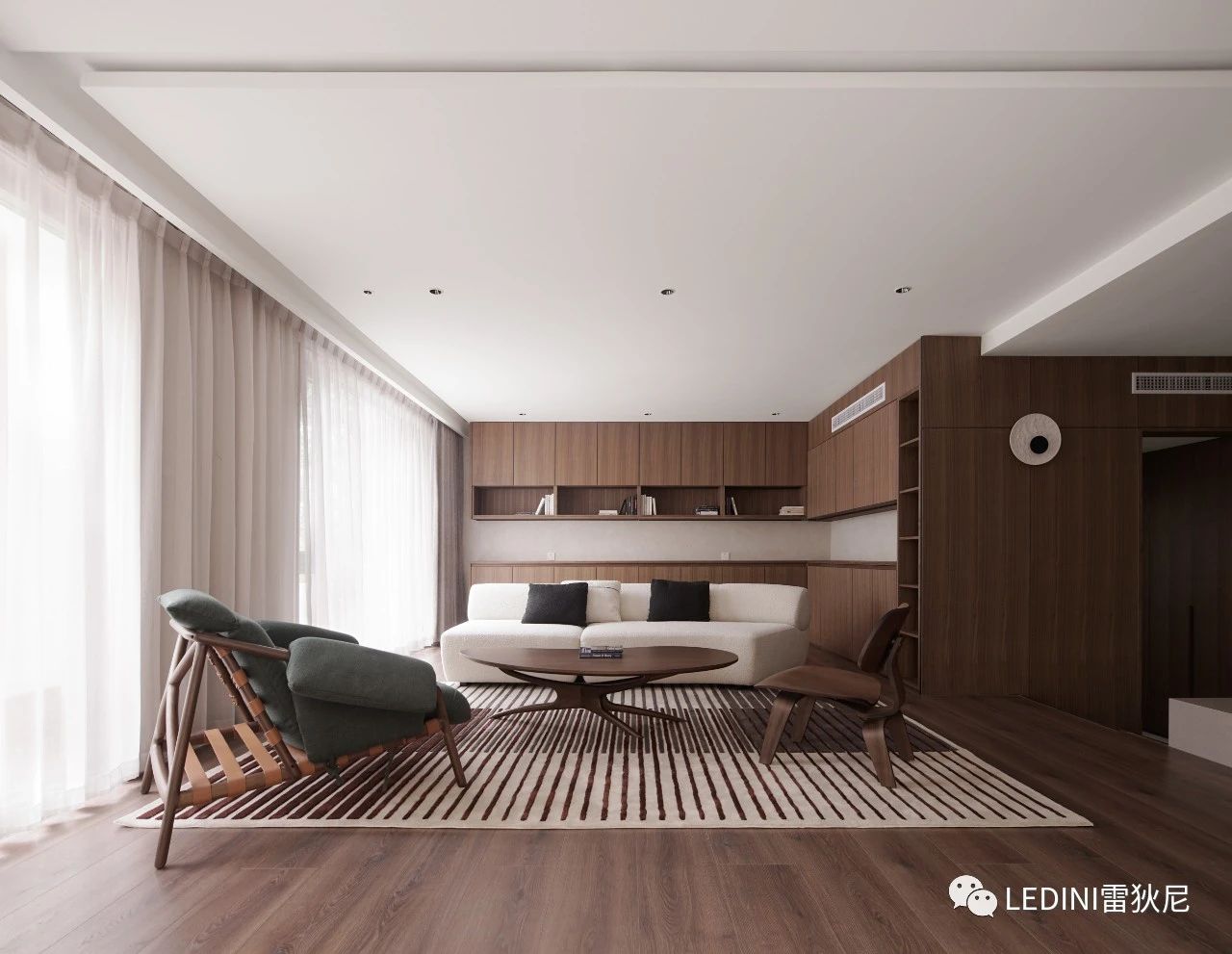 于是選用了LEDINI胡桃木鋸齒紋為全屋主要材料,相較于傳統(tǒng)板材,