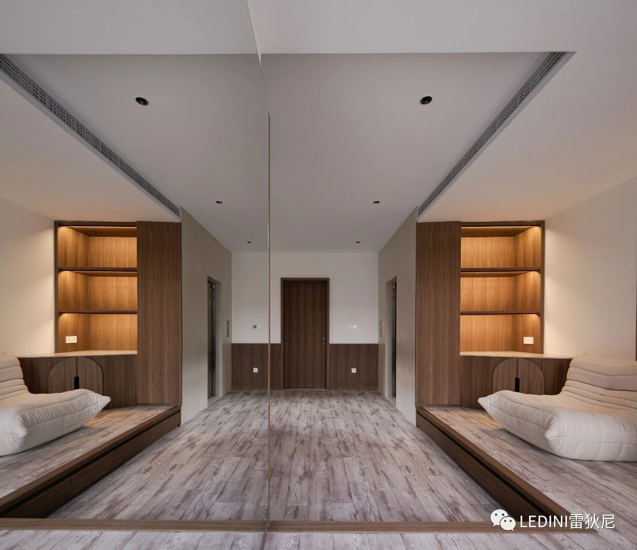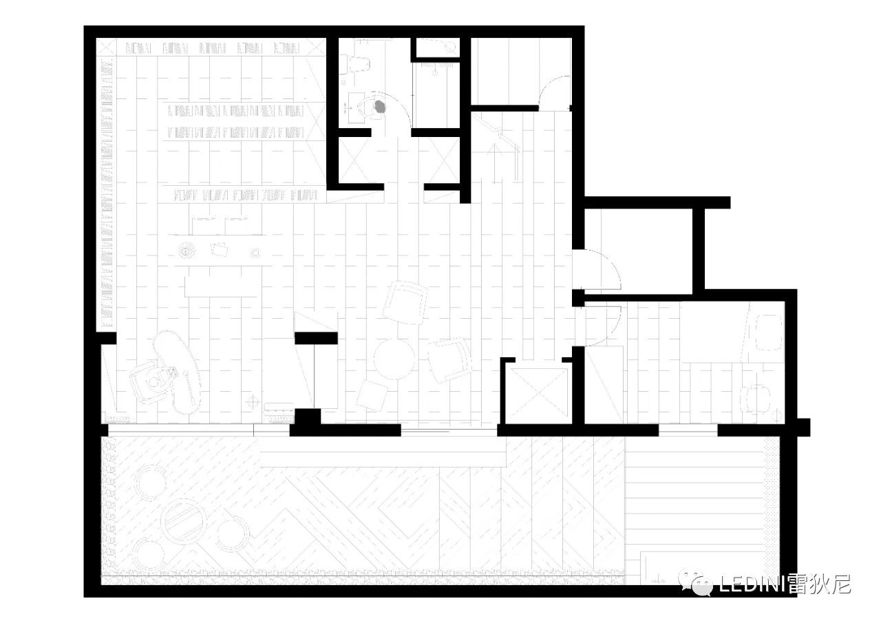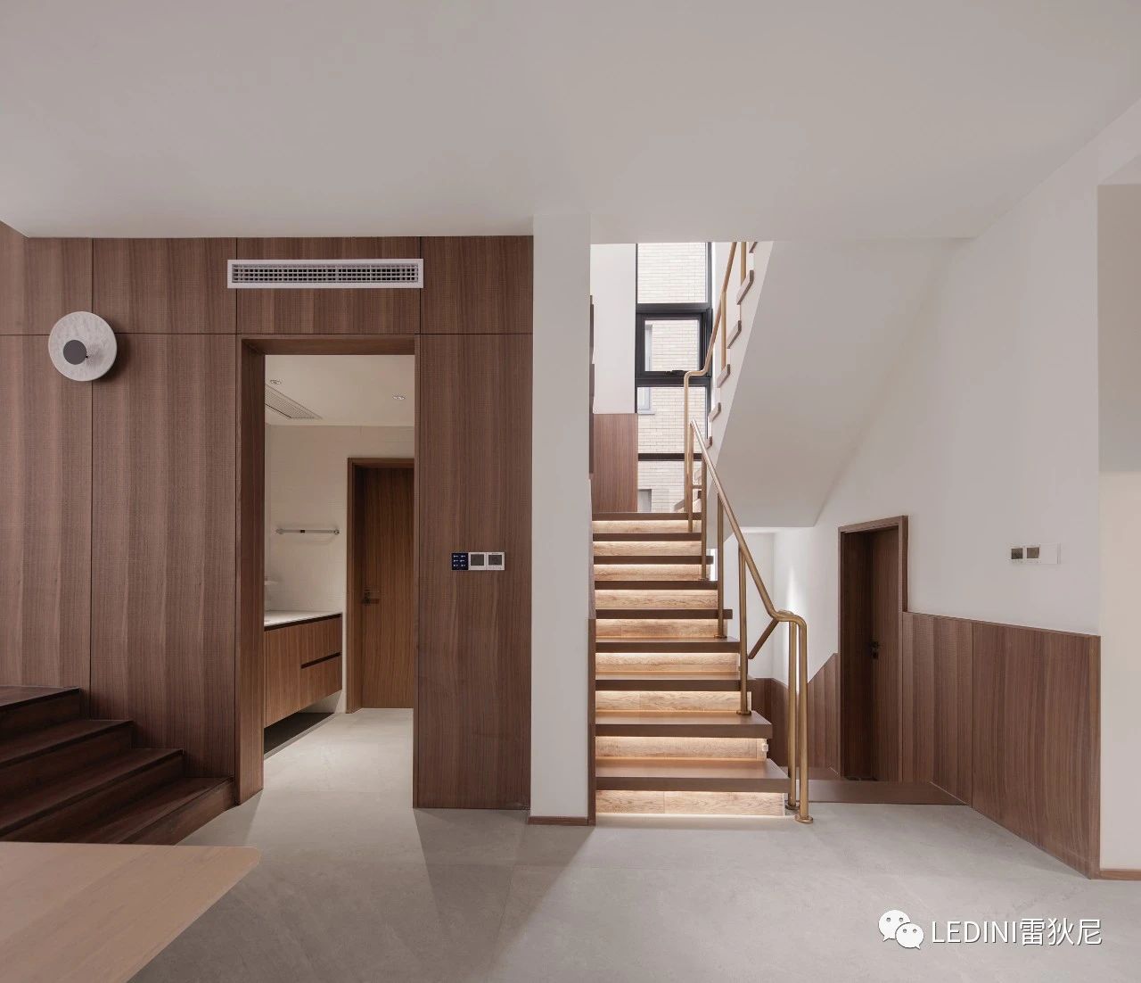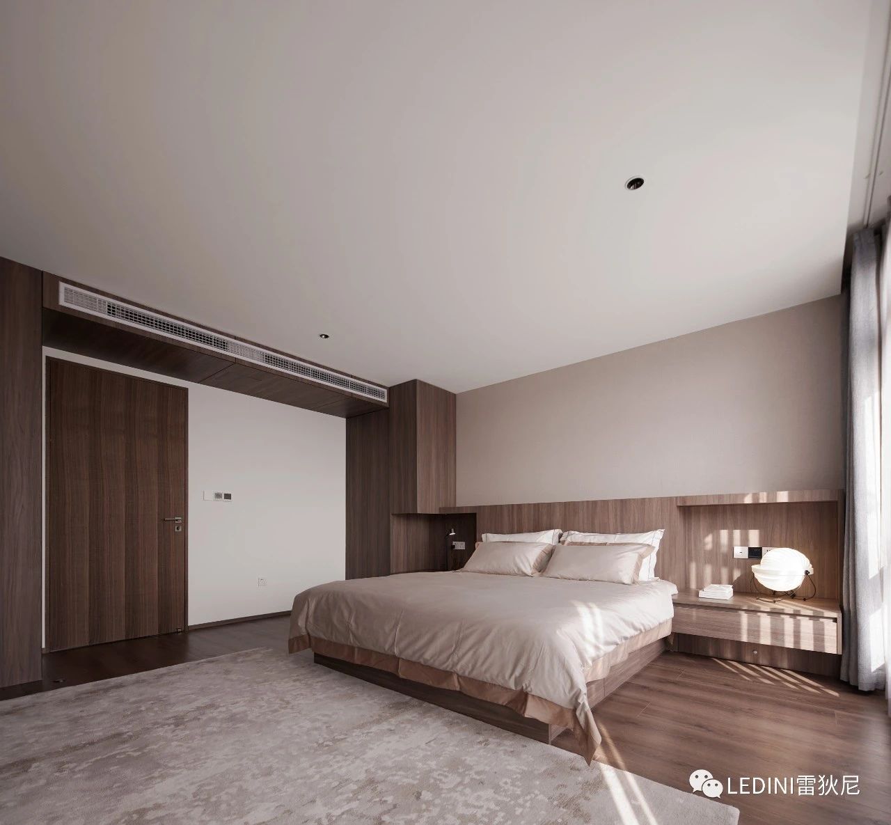 于是選用了LEDINI胡桃木鋸齒紋為全屋主要材料,相較于傳統(tǒng)板材,